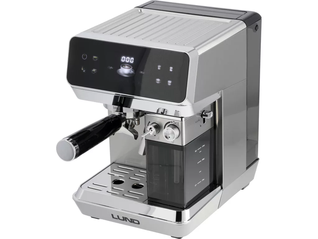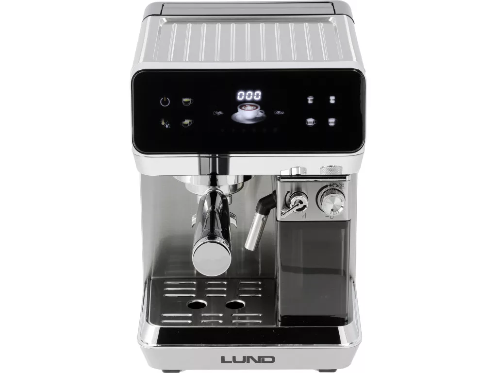 Nyomásos kávéfőző / LUND 68503 8 az 1-ben ötvözi a modern acél dizájnt a magas funkcionalitással. 8 automatikus program lehetővé teszi a klasszikus eszpresszó és tej alapú különlegességek elkészítését – gyorsan, kényelmesen és mindig ismételhető eredménnyel. Őrölt kávé és ESE tasakok használata szabad kezet ad, és igazodik a mindennapi igényekhez.