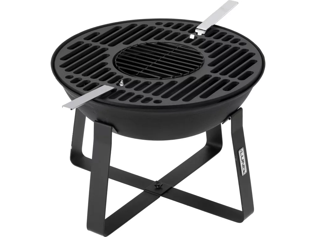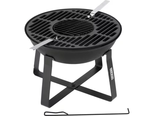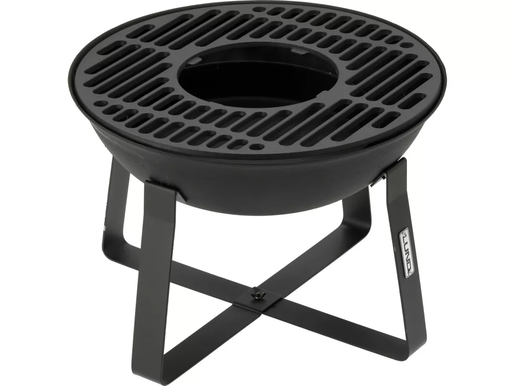 Egyszerű, stabil konstrukció tartós öntöttvasból, ezért a termék jól tűri a magas hőt és hosszú ideig megőrizheti a meleget, ami elősegíti az egyenletes ételek sütését és a fa egyenletes égését. Ez a megoldás jól működik a hétvégi grillpartiknál és a csendes esti tábortűznél.