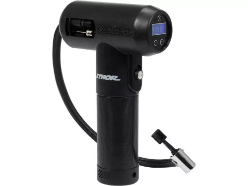 Vezeték nélküli kompresszor digitális LED-es nyomásmérővel. Beépített akkumulátorral működik, amely USB-csatlakozáson keresztül tölthető. A készülék a beállított nyomás elérésekor automatikusan leállítja a működést.