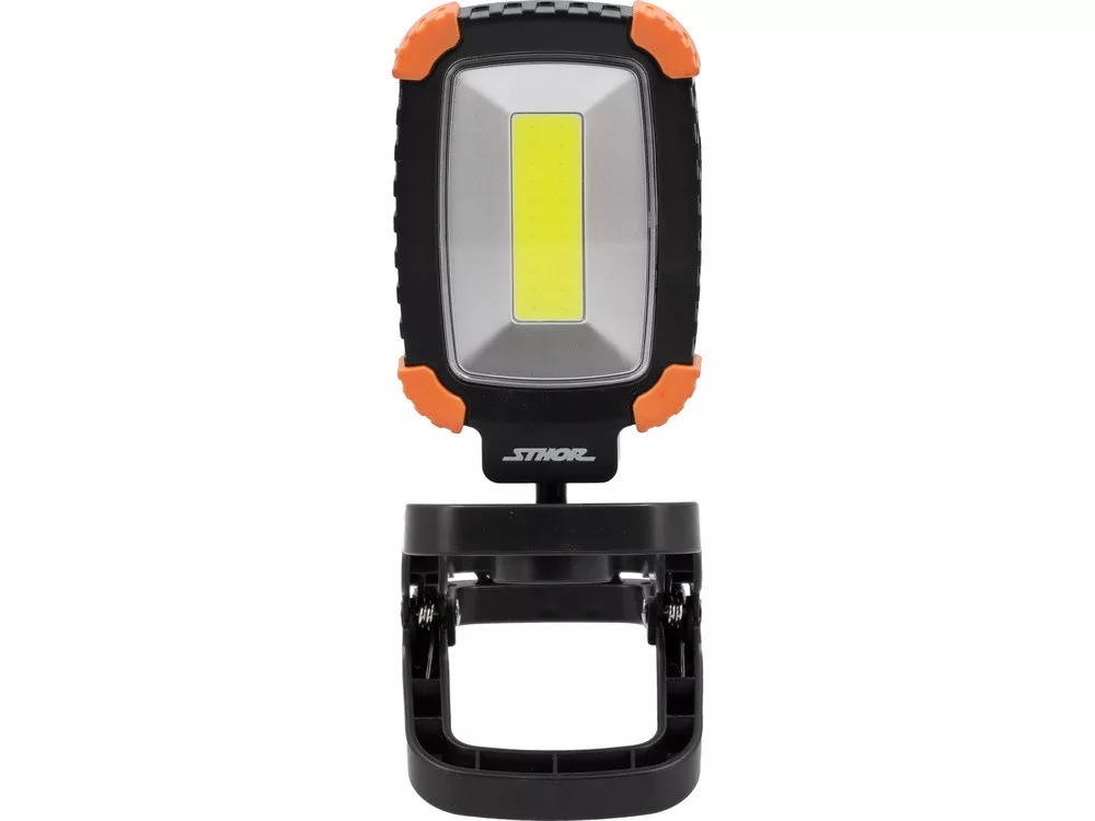 Hordozható reflektor, praktikus rögzítő bilinccsel, forgatható testtel, átlátszó burkolattal.