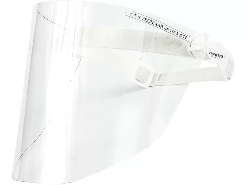 Arcvédő 190x345 mm-es, megfelel az EN166 szabvány követelményeinek, műanyagból készült arcvédővel és rögzítőpánttal.