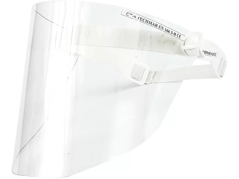 Műanyagból készült arcvédő és rögzítőpánt