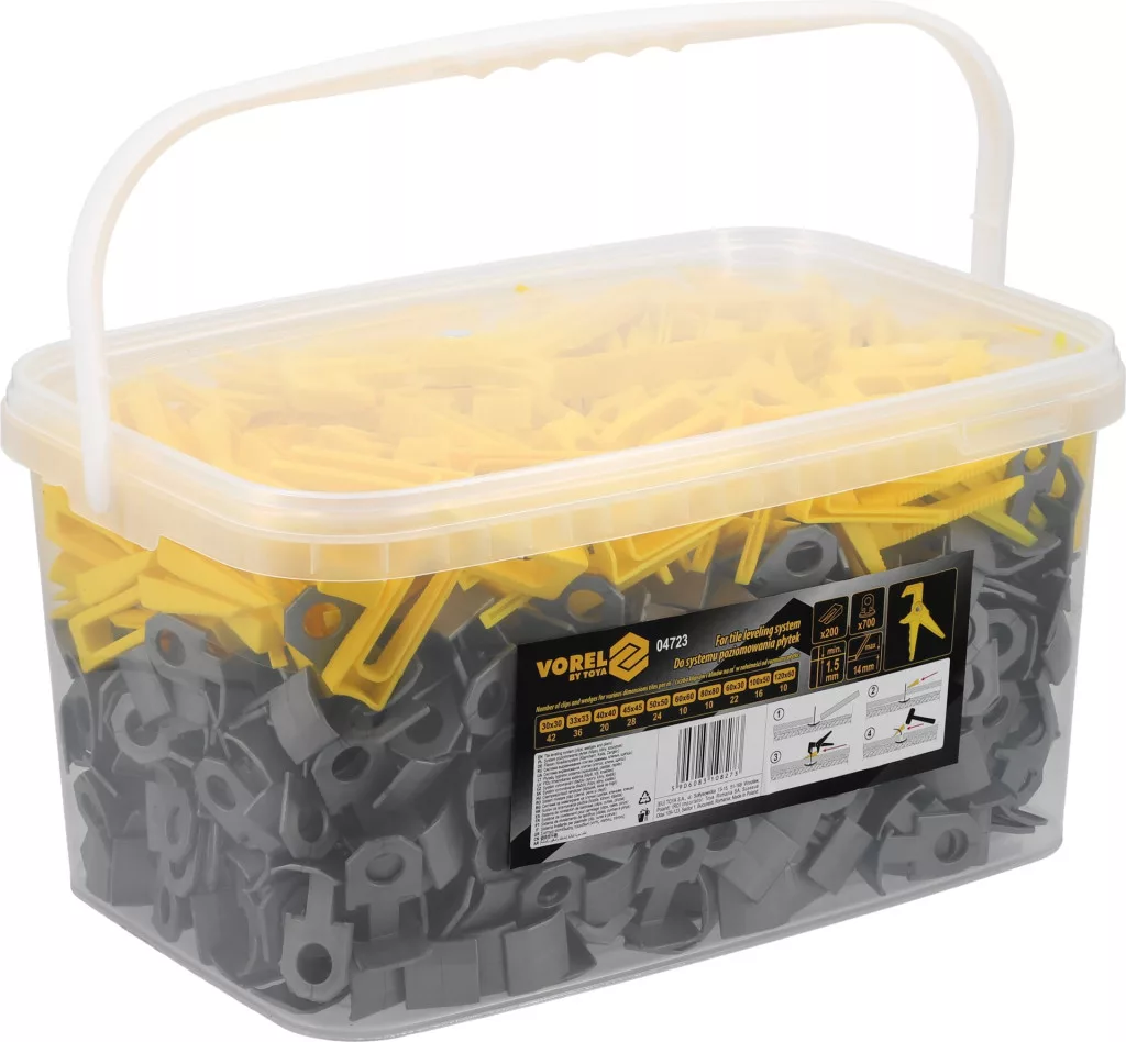 Vorel csempeszintező készlet fogóval 700 talpelem 200 ék 1,5 mm