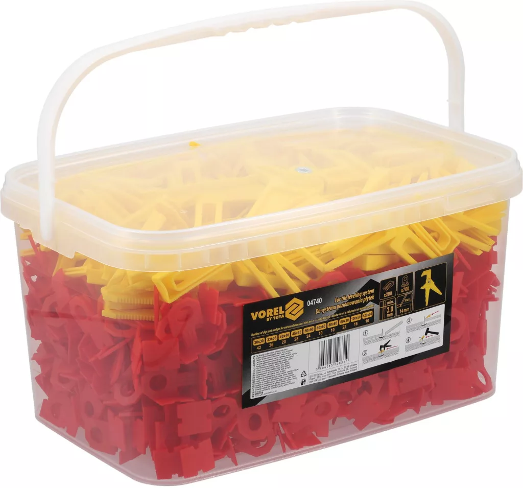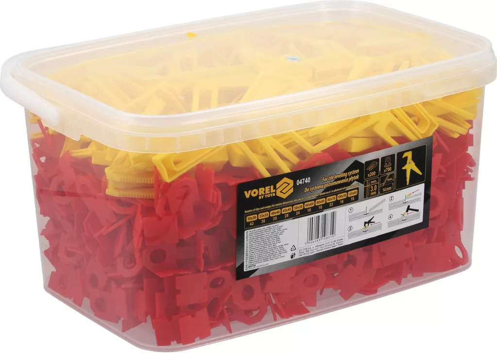 Vorel csempeszintező készlet fogóval 700 talpelem 200 ék 3 mm