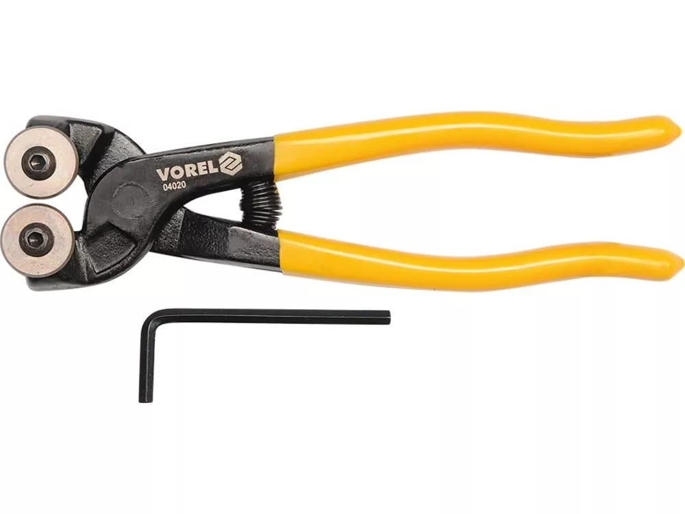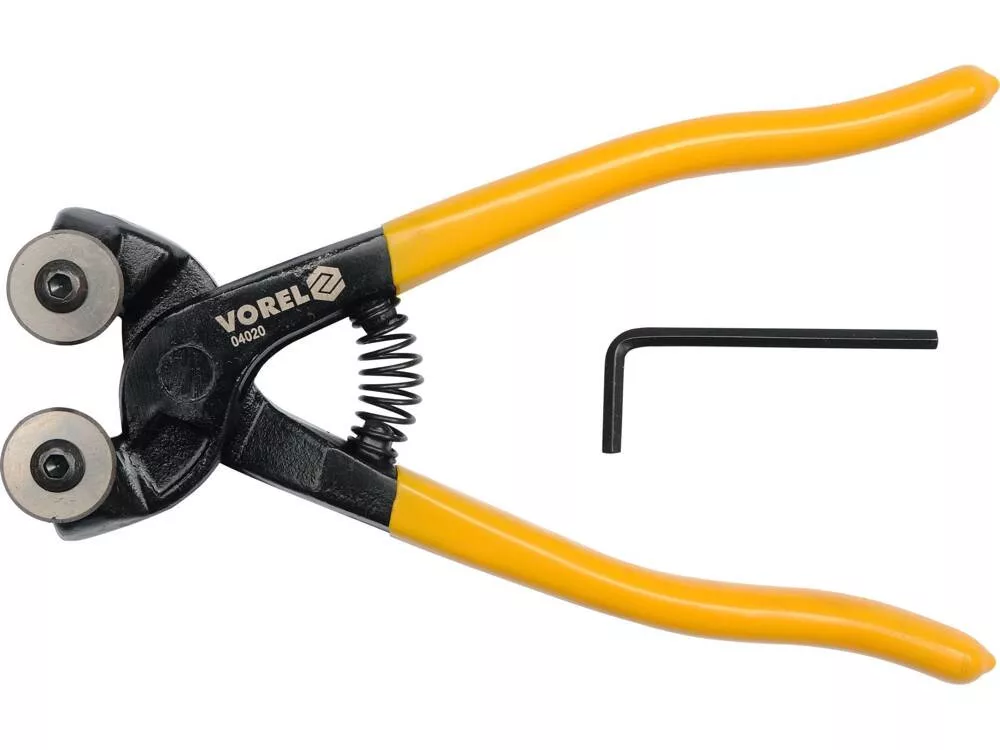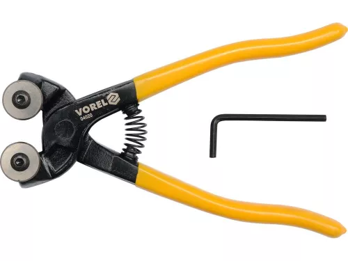 Fogó a kerámialapok precíz töréséhez. A vágóelemek keményfém körkések. A kések az orsón forgathatók, így mindig élesek.