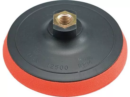 A tartós, rugalmas gumiból készült tárcsa a 125 mm átmérőjű csiszolókorongok a munkaoldalon tépőzáras réteggel rendelkezik. M-14 rögzítővel szerelve a sarokcsiszolókra történő rögzítéshez.