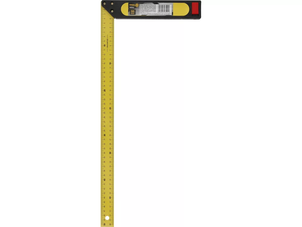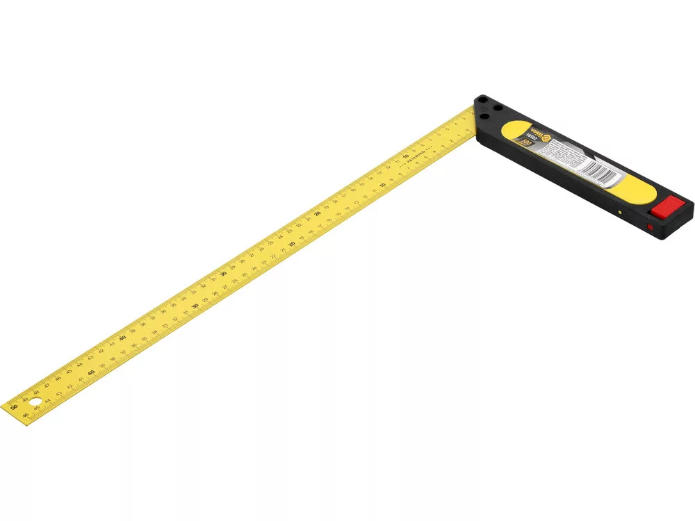 500 mm-es derékszög, amely egy robusztus, kétkomponensű lábból, acélrúddal, amely egyértelmű milliméteres beosztással rendelkezik.