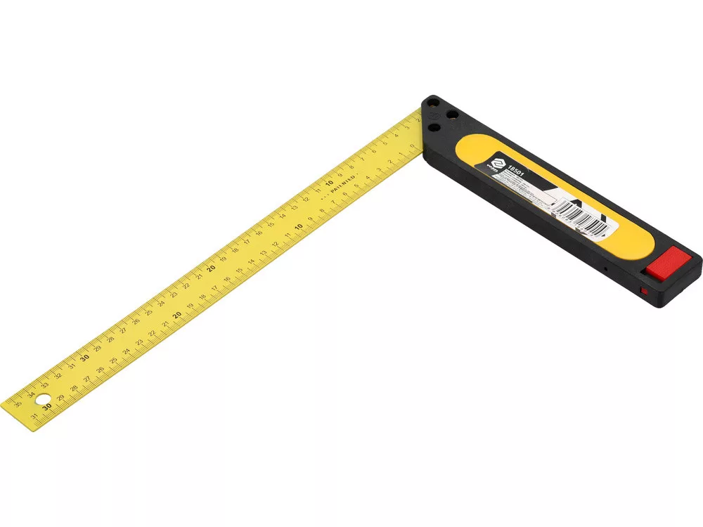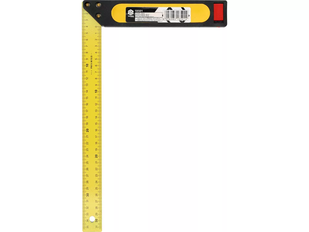 350 mm-es derékszög, amely egy robusztus, kétkomponensű lábból, acélrúddal, amely egyértelmű milliméteres beosztással rendelkezik.