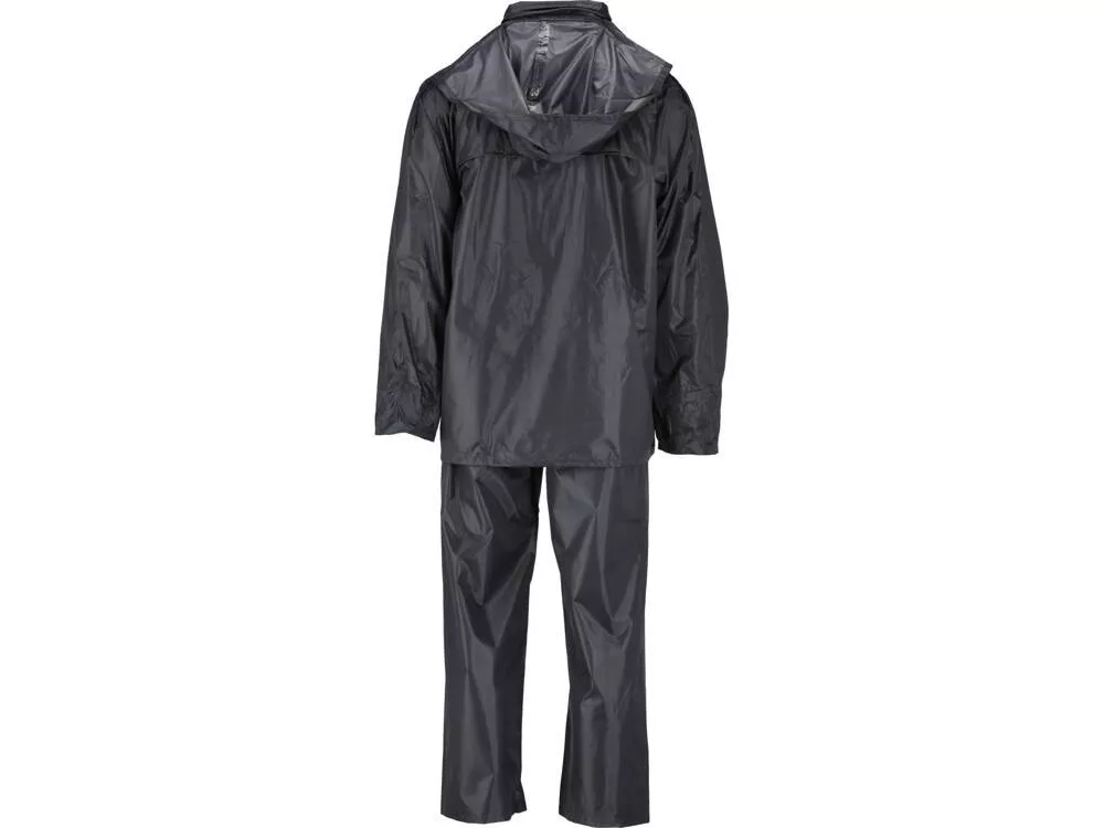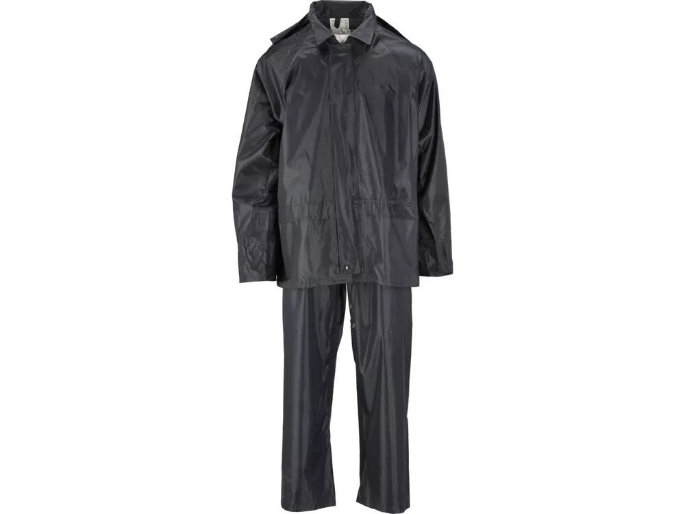 Kabát két nagy zsebbel, nadrág rugalmas derékpánttal. A PVC/poliészter keverék vízálló és légmentes anyag. A felesleges hő a háton lévő szellőzőnyílásokon és a hónalj alatti karimákon keresztül távozik az anyag alól.