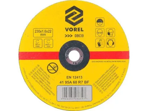 Gyanta kötésen alapuló, elektrokorundból készült, erősített, közepes szemcseméretű és nagy keménységű lapos korongok. Fémek sarokcsiszolóval történő vágásához tervezték