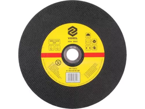 Gyanta kötésen alapuló, elektrokorundból készült, erősített, közepes szemcseméretű és nagy keménységű lapos korongok. Fémek sarokcsiszolóval történő vágásához tervezték