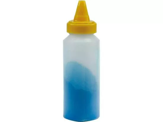 A műanyag tartály 115 g laza kék krétát tartalmaz, a zsinórral ellátott tartályok újratöltéséhez.