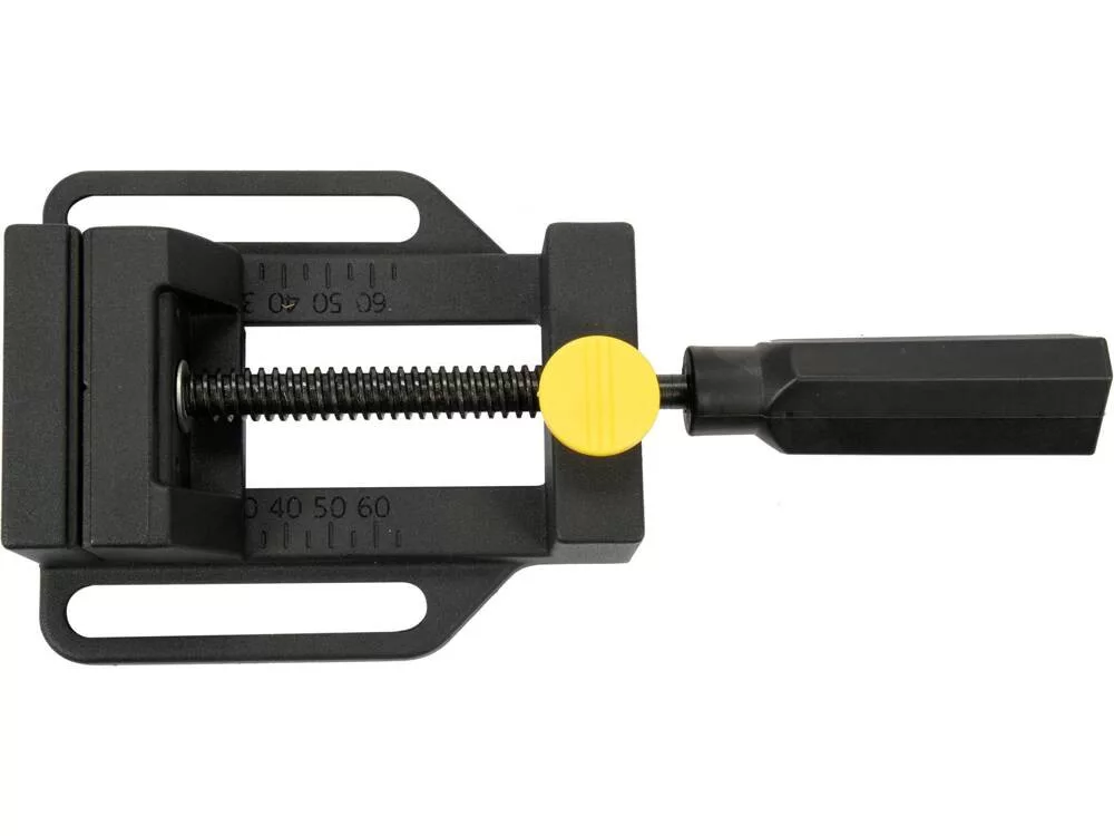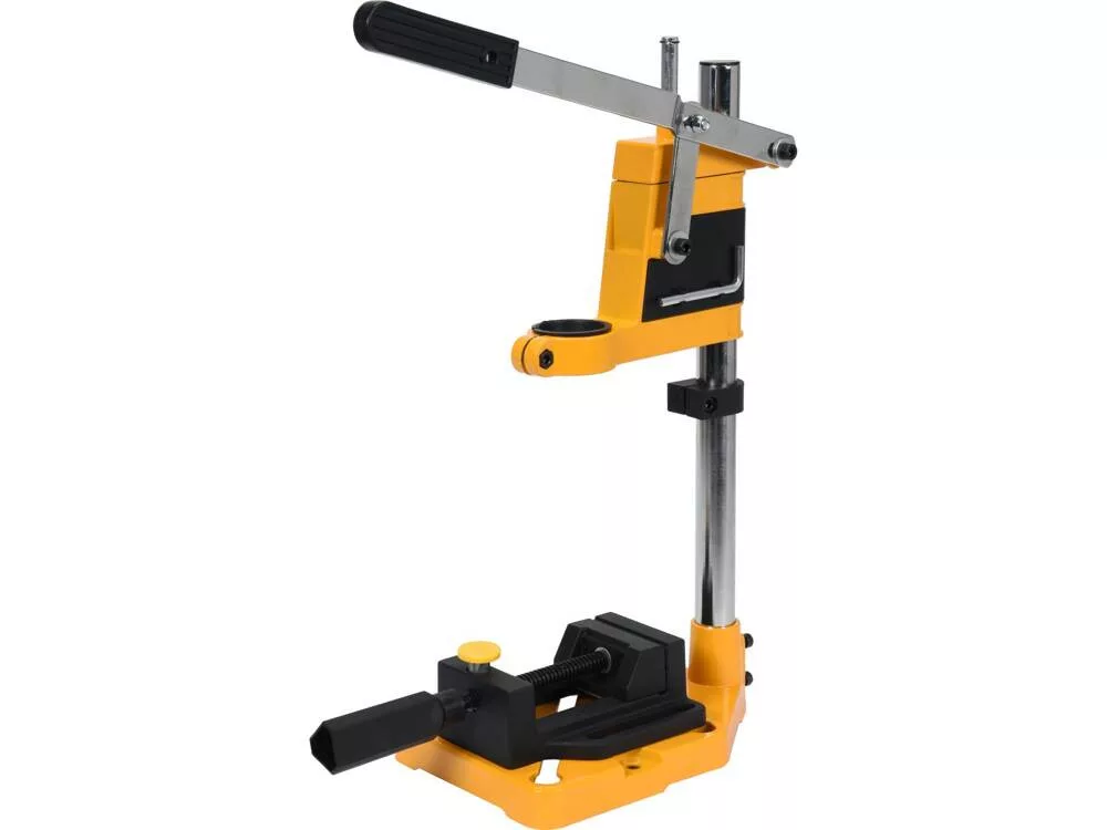 Kompakt állvány fém és fa merőleges fúrásához. Az állvány nem csavarodik el, amikor a fúrót lenyomják. Fúrási mélység (fúrási löket): 0 - 60 mm; állítható. Gépi satu tartozék