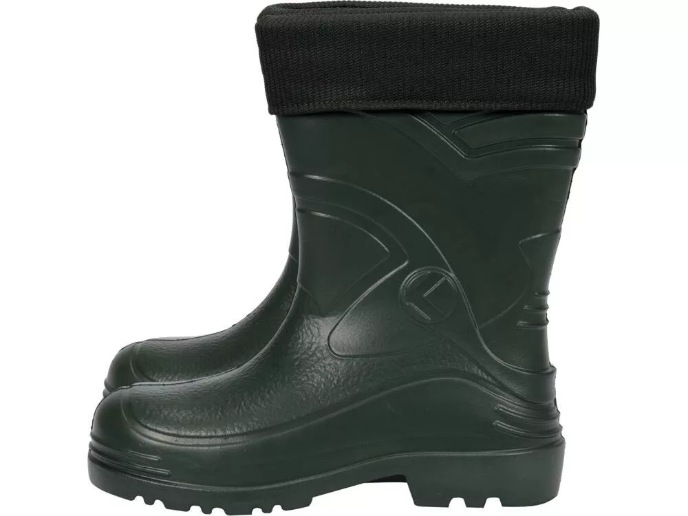 Férfi gumicsizma EVA anyagból, amelyet könnyű súlya és hőszigetelő tulajdonságai jellemeznek. Kivehető hőtartó betéttel
