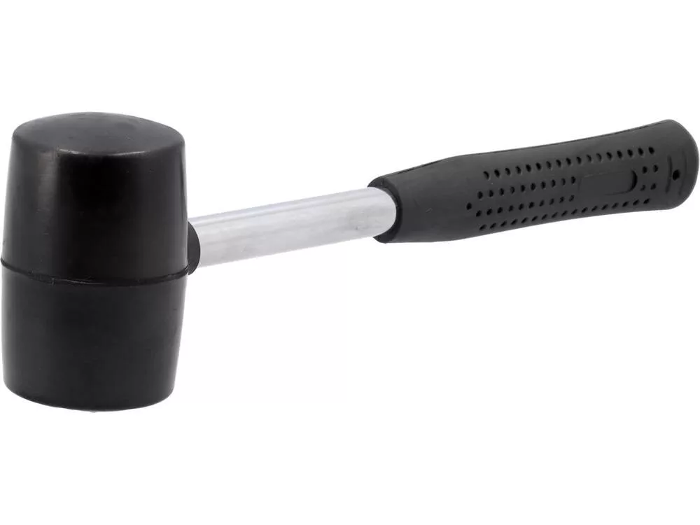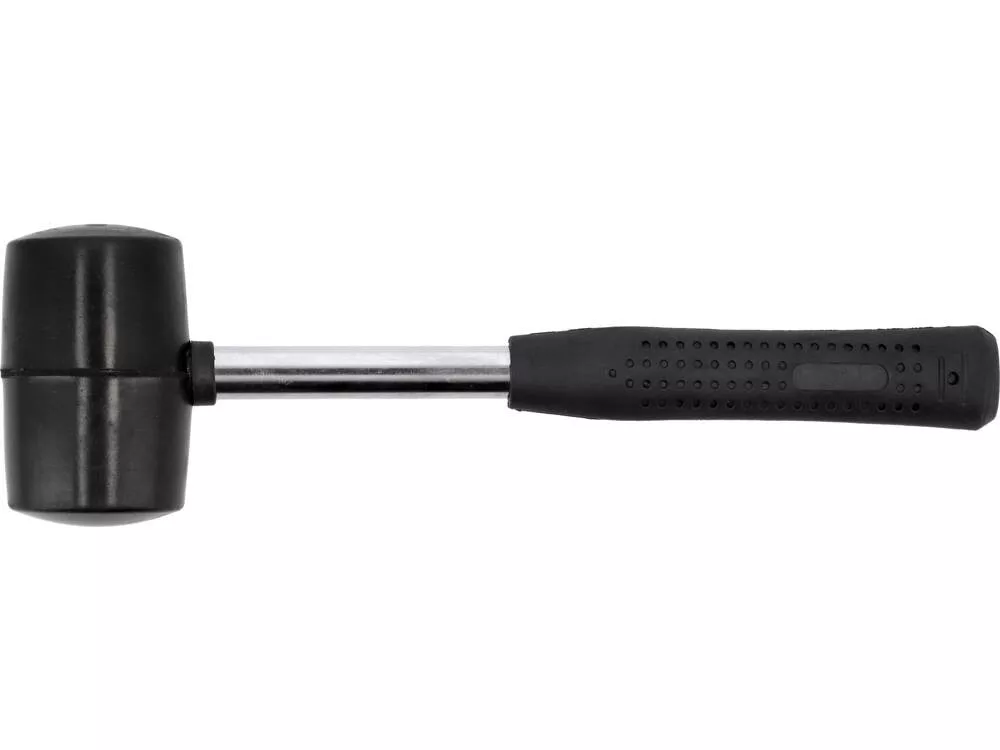 Kemény fekete gumiból készült kalapács acél nyélre szerelve - sérülésálló. Csúszásmentes bevonattal ellátott nyél