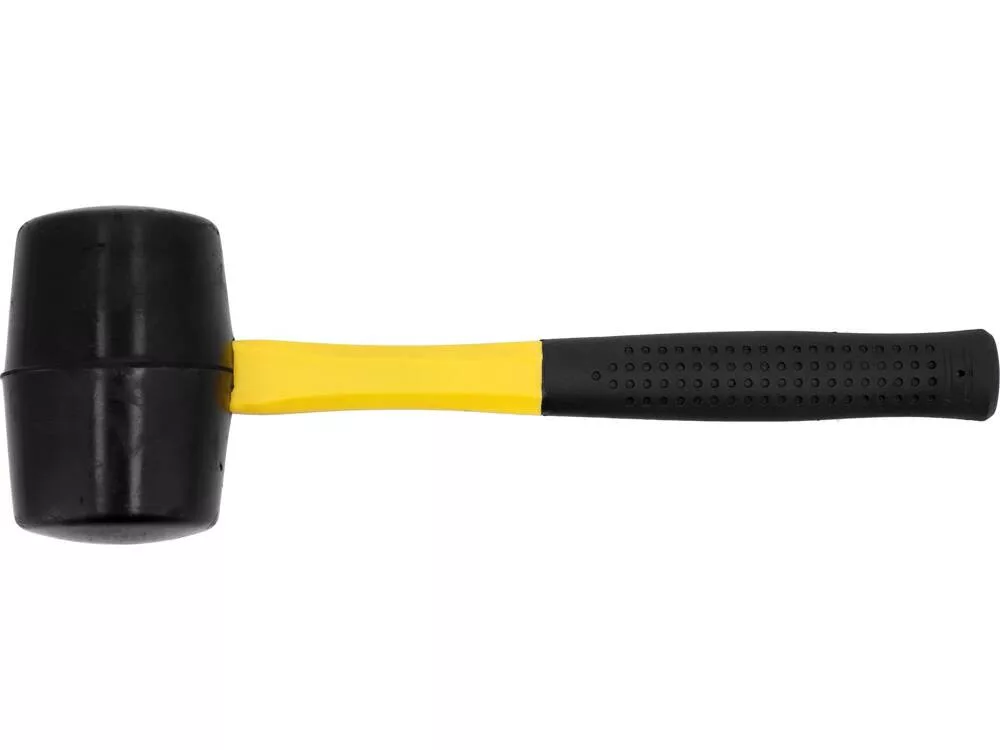 Kemény fekete gumiból készült kalapács üvegszálas műanyag nyélre szerelve - sérülésálló. Csúszásmentes bevonattal ellátott nyél