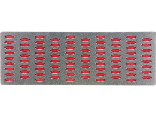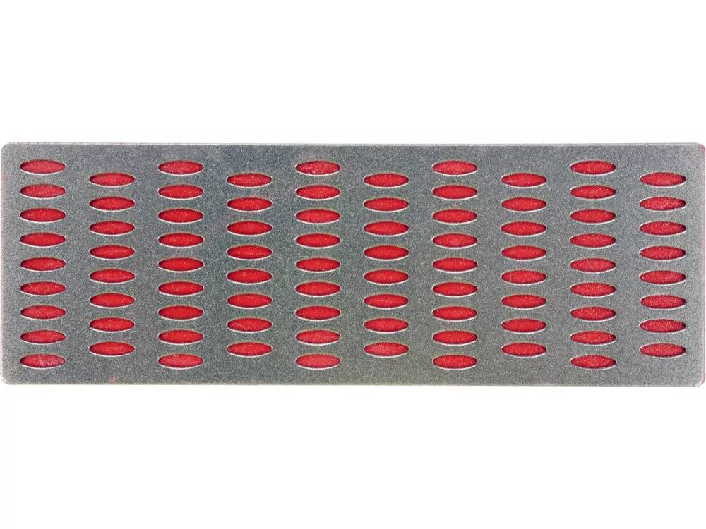 Gyémánt fenőkő, szemcseméret 300. Gyémántlemez perforált acéllemezen. Méretek 150 x 50 x 4 mm. Kések és szerszámok száraz élezéséhez