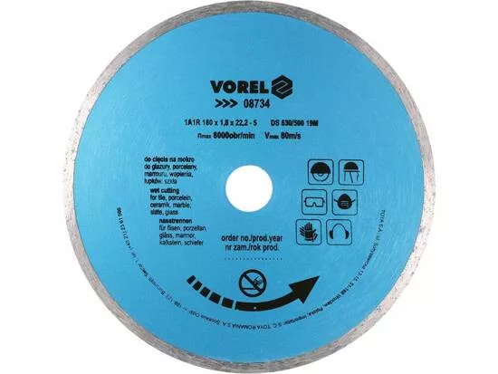 Gyémántvágó sarokcsiszolókhoz, 5 mm magas folyamatos szegmenssel felszerelve. "Nedves" munkához tervezve. Ajánlott kerámialapok, mázas építőanyagok, üveg, márvány stb. vágásához.