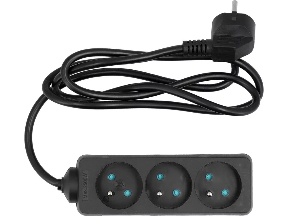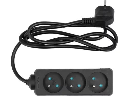 Klasszikus földelt hosszabbító három dugallyal, műanyag aljzatburkolattal, kábel hossza 1,5 m