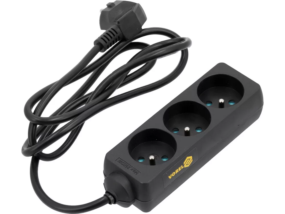 Vorel hosszabbító elosztó hármas, földelt, kapcsoló nélkül 1,5 m