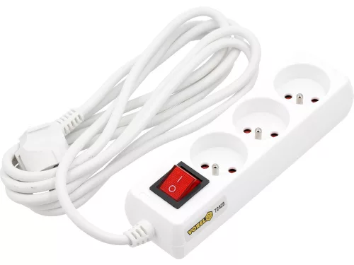 Vorel hosszabbító elosztó hármas, földelt, kapcsolóval 3 m fehér
