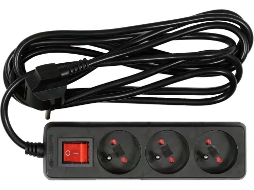 Klasszikus földelt hosszabbító három dugallyal, műanyag aljzatburkolattal, kábel hossza 3 m