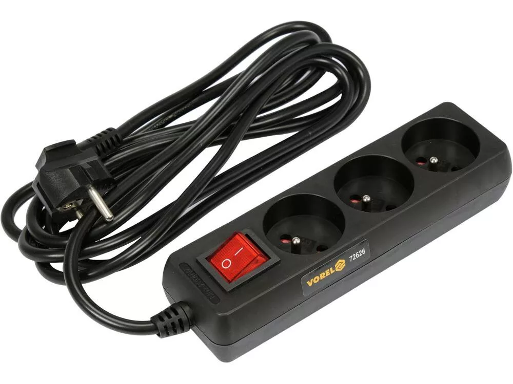Vorel hosszabbító elosztó hármas, földelt, kapcsolóval 3 m fekete