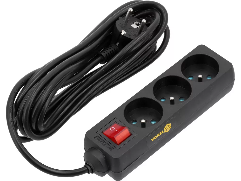 Vorel hosszabbító elosztó hármas, földelt, kapcsolóval 5 m fekete