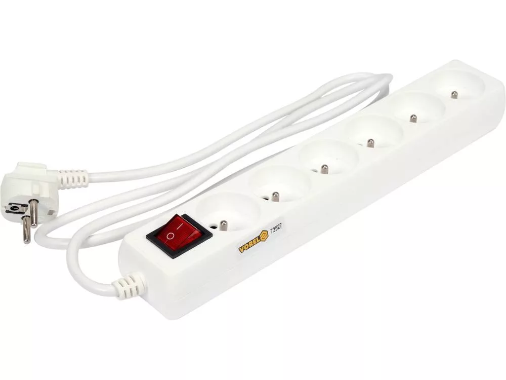 Vorel hosszabbító elosztó hatos, földelt, kapcsolóval 1,5 m