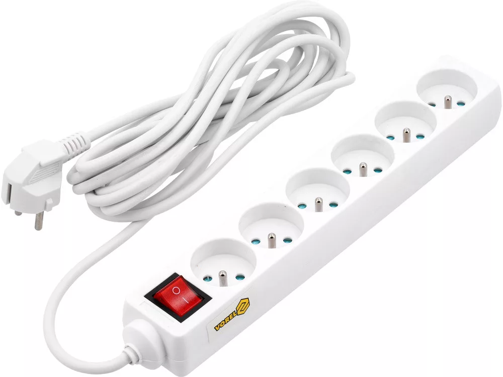 Vorel hosszabbító elosztó hatos, földelt, kapcsolóval 5 m