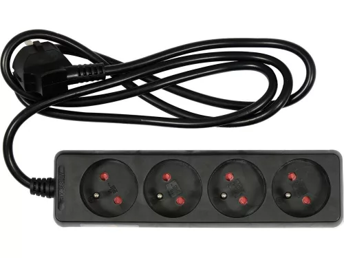 Klasszikus földelt hosszabbító négyes dugallyal, műanyag aljzatburkolattal, kábel hossza 1,5 m