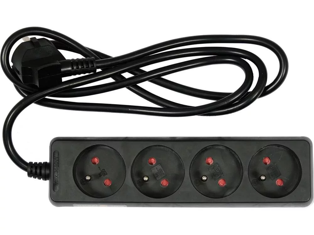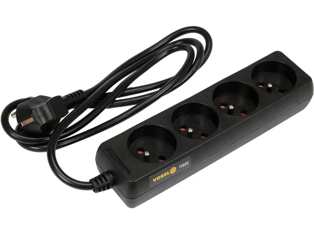 Vorel hosszabbító elosztó négyes, földelt, kapcsoló nélkül 1,5 m fekete