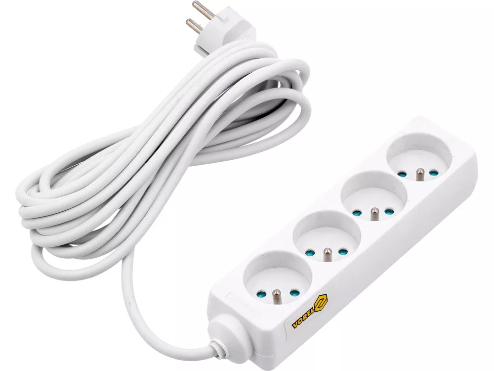 Vorel hosszabbító elosztó négyes, földelt, kapcsoló nélkül 5 m fehér