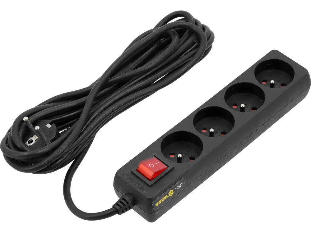 Vorel hosszabbító elosztó négyes, földelt, kapcsolóval 5 m fekete
