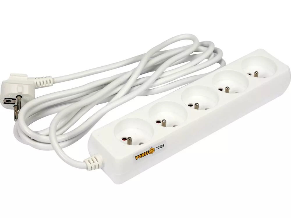 Vorel hosszabbító elosztó ötös, földelt, kapcsoló nélkül 3 m