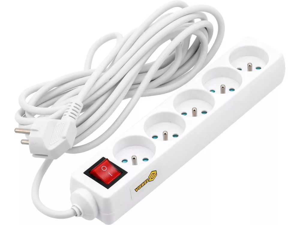 Vorel hosszabbító elosztó ötös, földelt, kapcsolóval 5 m