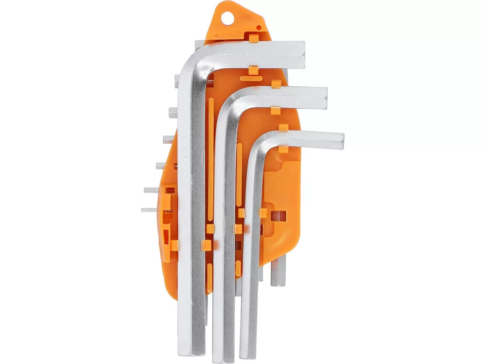 10 részes imbuszkulcs készlet. 1,5, 2, 2,5, 3, 4, 5, 5,5, 6, 8, 10 mm. Edzett acélból készült. Szatén kivitelben