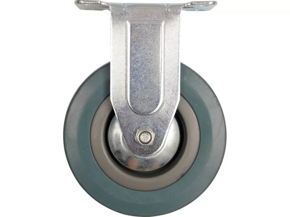 125 mm átmérőjű fix kerék, csapágyazott, szürke gumiabroncs, magasság 164 mm