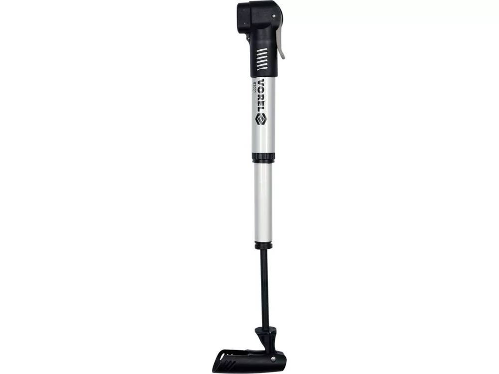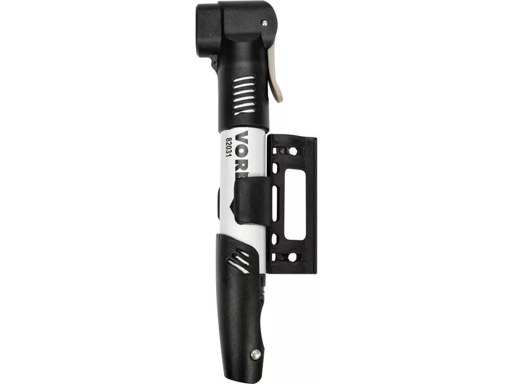 Alumíniumból készült teleszkópos kerékpárpumpa. A hegye vékony kerékpár- és autószelepek pumpálásához egyaránt alkalmas. A kerékpárvázra történő rögzítéshez rögzítő konzollal rendelkezik.