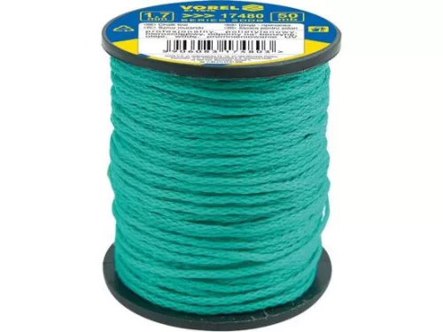 Kőműves zsinór, 1,7 mm vastag és 100m hosszú, amely polipropilén fonalból, fonási módszerrel készül. Nagymértékben ellenáll az olajoknak, a benzinnek, az uv-sugárzásnak és a nedvességnek.