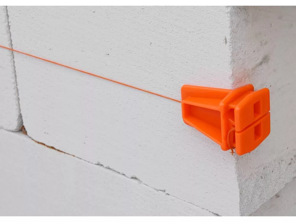 Kőműves munkákhoz való igazító eszköz, amely lehetővé teszi a kábel gyors feszítését a munka során. A fogantyú rögzítése nem igényel további rögzítőelemeket. A készlet 18 m poliamid zsinórt tartalmaz, élénk narancssárga színben.