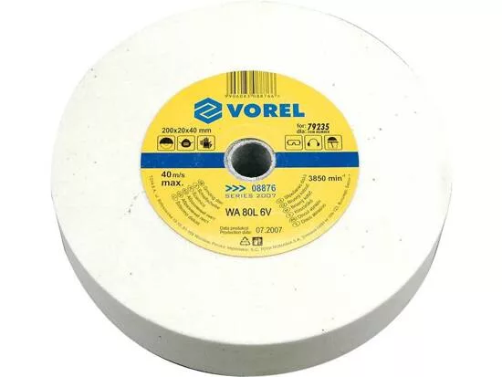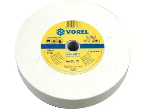 Vorel csiszolókorong. Méret: 200 Mmx20 Mmx40 Mm, 40M/S, fehéra 80L 6V köszörűkorong