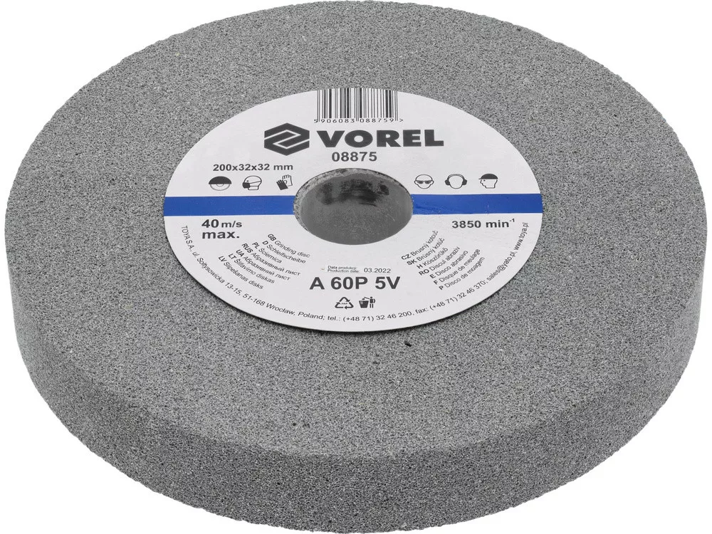 Kerámia tárcsa padra csiszolóhoz, korundból készült. Anyagok, például fémek és kemény műanyagok csiszolásához és élezéséhez használható. Szemcseméret 60 élesítéshez és simításhoz