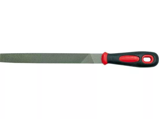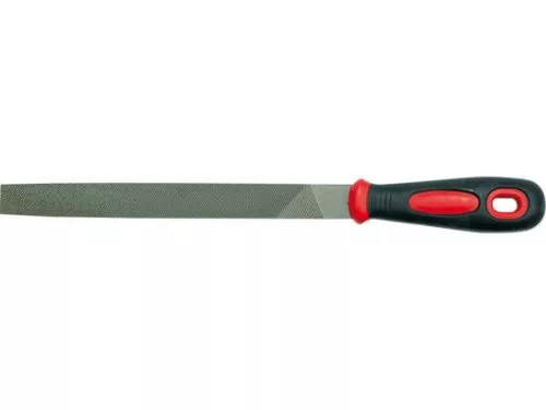 Lapos reszelő, dupla vágással, kétkomponensű műanyag fogantyúval. 200 mm-es