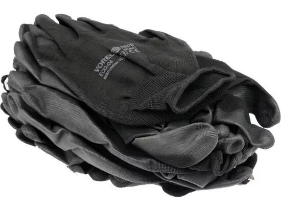 Vorel munkakesztyű PU bevonattal fekete 12 pár 10-es