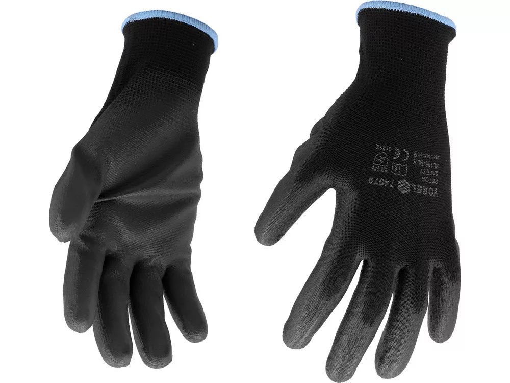 Vorel munkakesztyű PU bevonattal fekete 9-es