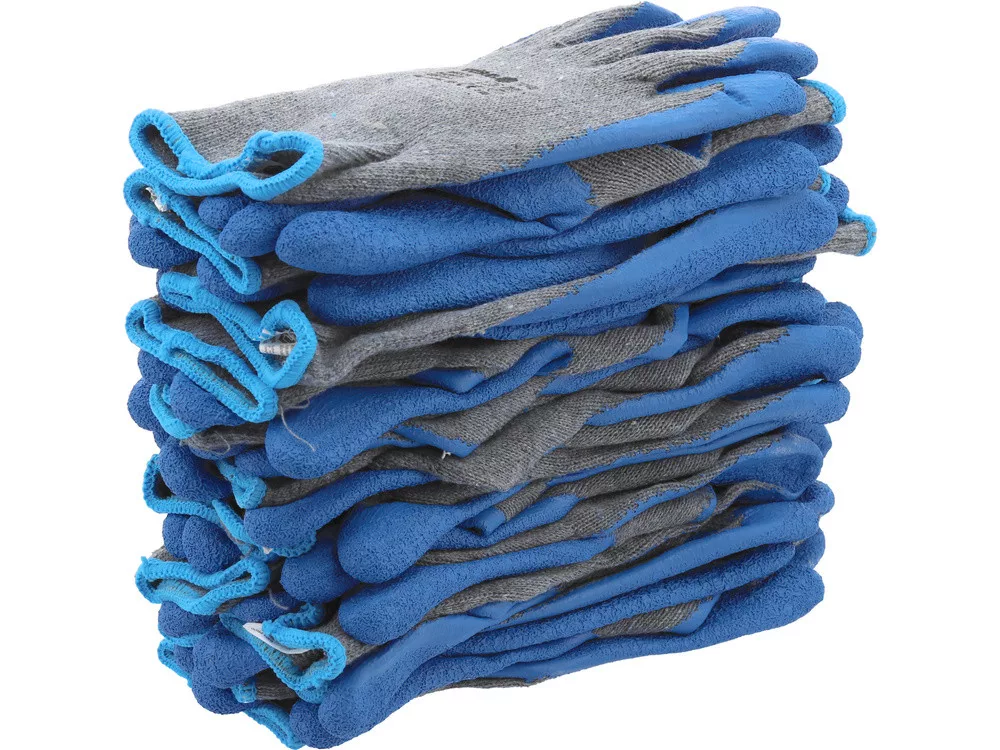 12 pár munkavédelmi kesztyű szürke poliészterből, kék poliuretán bevonattal a markolat területén. A varrat nélküli kialakítás nagyfokú kényelmet és kiváló tapintást biztosít