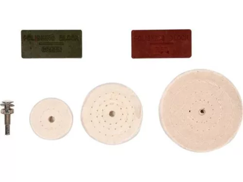 A készlet tartalma: lapos tárcsa x3, polírozópaszta x2, fogantyú tüskével