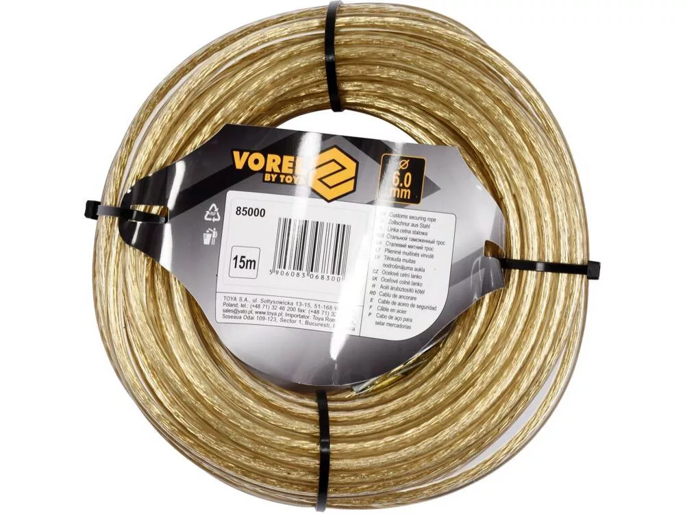 Vorel ponyva rögzítő acélkötél 6 mm 15 m