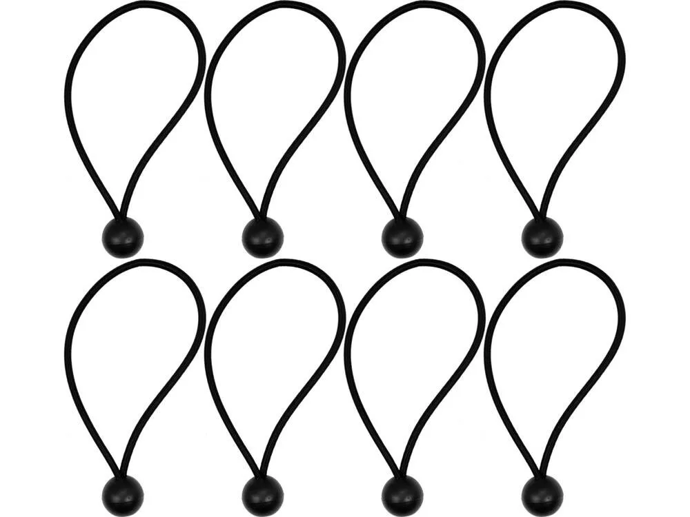 Műanyag gömbben végződő rugalmas kötél, 25mm, hossza 200mm, 8 db készletenként A rugalmas kötél lehetővé teszi a ponyva hatékony rögzítését a cövektartókhoz vagy más rögzítőelemekhez.